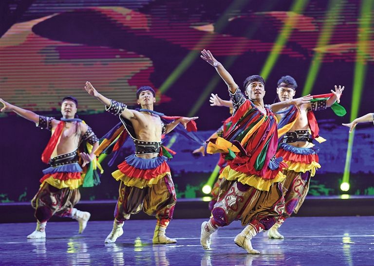 在第11屆中國(guó)舞蹈“荷花獎(jiǎng)”評(píng)選中,13位身著蒙古袍、顫顫巍巍的“爺爺”拄著拐杖奪得金獎(jiǎng)?!盃敔敗笔种械墓照葧r(shí)而變成自拍桿,時(shí)而又變成馬頭琴,風(fēng)趣靈動(dòng)的蒙古舞與流行樂混搭得異常和諧,呼和浩特民族演藝集團(tuán)編創(chuàng)的舞蹈《爺爺們》如同不一樣的煙火,在二十一世紀(jì)的蒙古舞星空炸裂出別樣的絢爛。2019年,內(nèi)蒙古舞蹈迎來高光時(shí)刻,民族舞劇《草原英雄小姐妹》斬獲文華大獎(jiǎng),填補(bǔ)了內(nèi)蒙古在文華獎(jiǎng)?lì)I(lǐng)域的空白;由鄂爾多斯民族歌舞劇院編創(chuàng)的舞蹈作品《黑緞子坎肩》捧回第12屆中國(guó)舞蹈“荷花獎(jiǎng)”小金人。在似錦繁華迷人眼的舞壇,蒙古舞憑借勃發(fā)的民族生命力和強(qiáng)大的藝術(shù)感染力獨(dú)領(lǐng)風(fēng)騷。