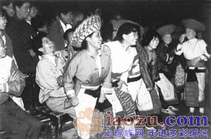 隨著陣陣高漲的歡笑、叫喊,人們?cè)陝?dòng)了。坐在男人們腿上的姑娘,一個(gè)個(gè)彈而跳起,又重重地落下來(lái),坐到男人們的腿上。如此蹾下又跳起,跳起又蹾下,在一片歡叫聲中反復(fù)地循環(huán)。
