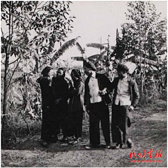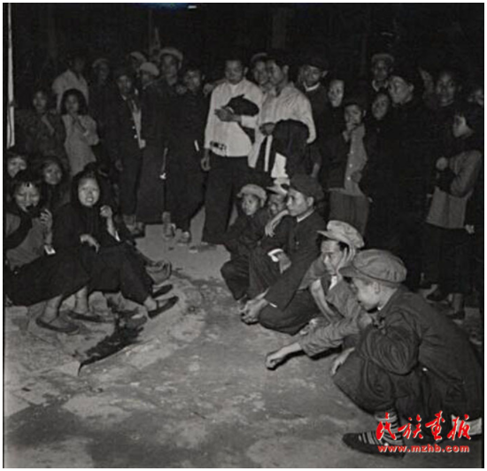 “歌圩”是桂西壯族古老的風俗。每年農歷正月、二月、四月都有歌圩日。圖為1957年廣西壯族自治區(qū)憑祥市郊區(qū)的歌圩日,這里不但處處歡歌笑語,還有搶花炮、演壯戲、舞彩龍、舞彩鳳、唱桂劇等很豐富的文娛活動