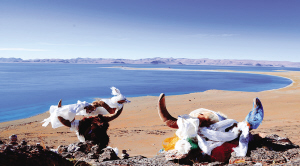 放眼望去,羌塘草原上有許多大大小小的湖,它們?nèi)纭疤焓怪疁I”“天空之鏡”,毫無規(guī)則地鑲嵌在草原上。湖泊,在我們的藏族司機(jī)桑堆師傅口中是蒼茫大野的靈魂,是神族們居住的水晶宮。所以,每有湖泊出現(xiàn)在桑堆師傅的視野里時(shí),他總是表情肅穆,口念六字真言以祈求平安。