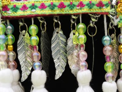 苗族女子服飾花帽-正面繡花及裝飾