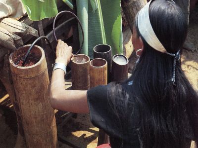 圖片說明:佤族竹筒制水酒